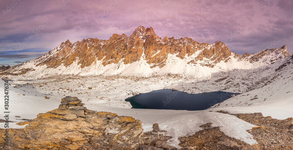Lac Des 9 Couleurs Et L Aiguille De Chambeyron Lake Of 9 Colors And The Chambeyron Needle Stock Photo Adobe Stock
